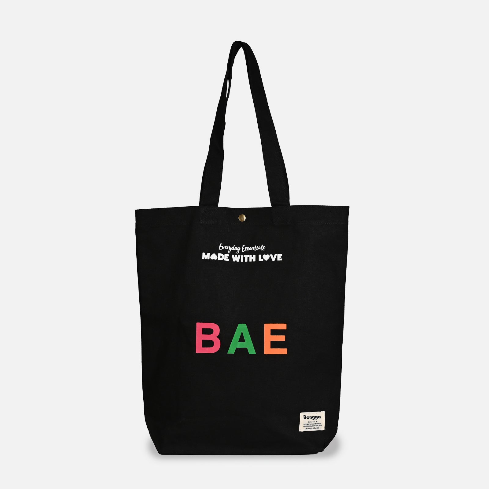 Part of the Bonggs Everyday Essentials collection, this tote celebrates the beauty of daily rituals. Made with love and designed for real life, the signature Bonggs label confirms your commitment to quality and conscious living. Carry good vibes wherever you go with this statement-making tote from our Everyday Essentials collection. Designed for those who believe every day deserves a touch of positivity, this bag combines practical functionality with uplifting style.