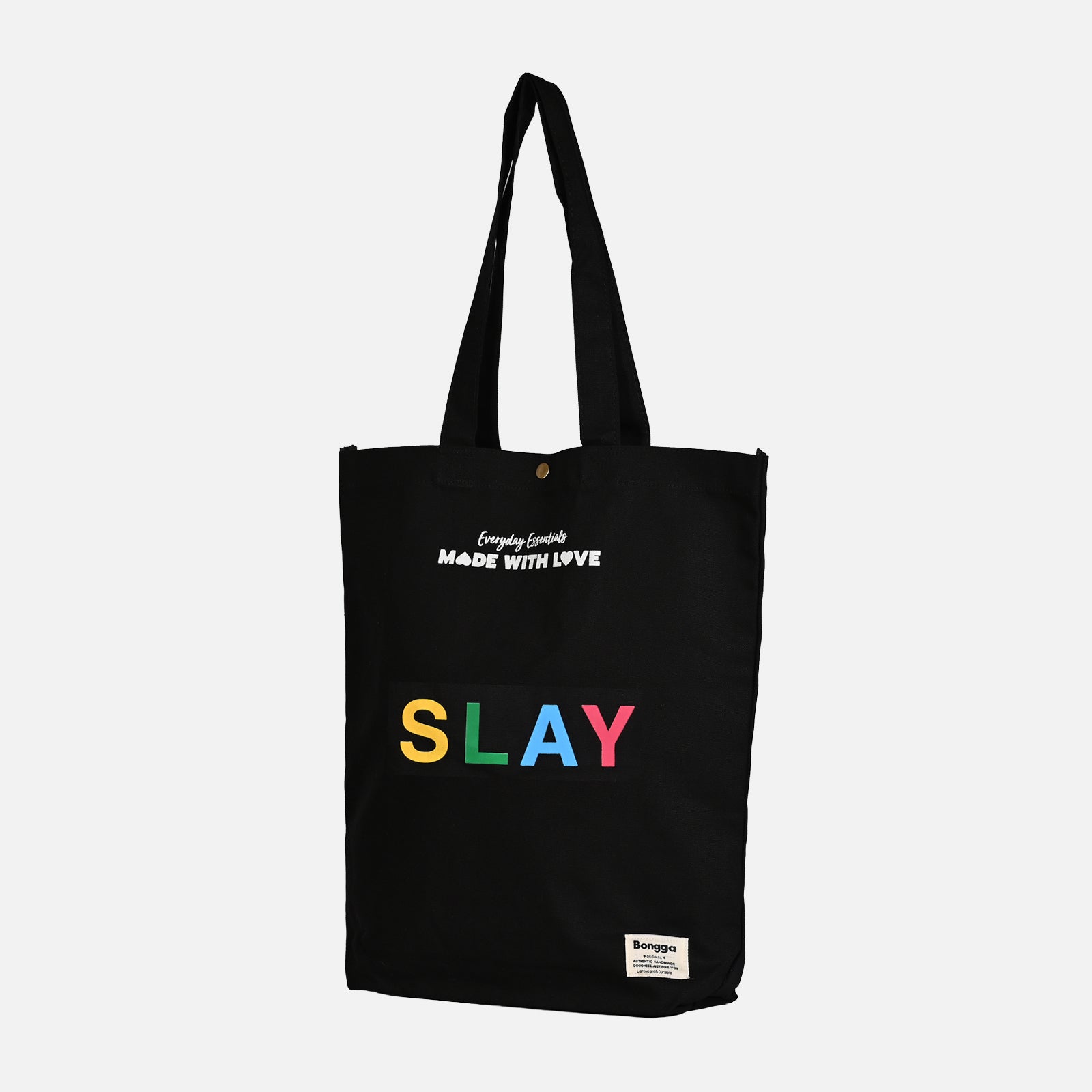 Part of the Bonggs Everyday Essentials collection, this tote celebrates the beauty of daily rituals. Made with love and designed for real life, the signature Bonggs label confirms your commitment to quality and conscious living. Carry good vibes wherever you go with this statement-making tote from our Everyday Essentials collection. Designed for those who believe every day deserves a touch of positivity, this bag combines practical functionality with uplifting style.